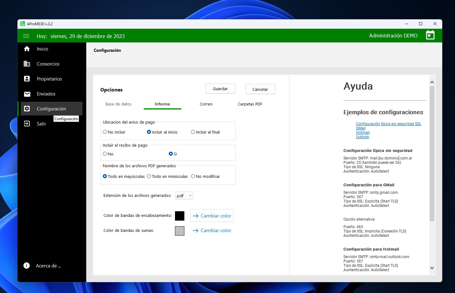 - Texto del cuerpo del mail configurable para cada consorcio.